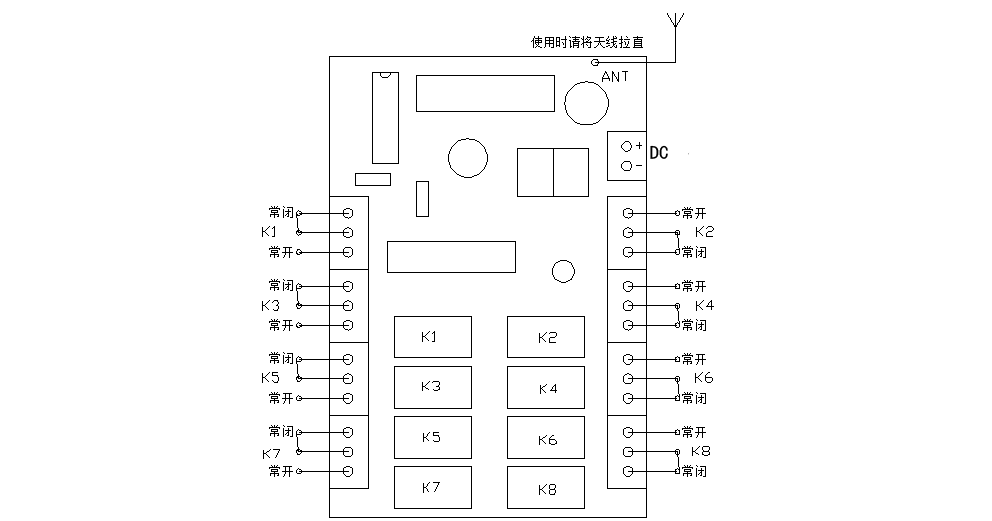 二:学习方法:接收器断电并打开发射器外壳,发射线路板上有一个学习按键K0,常按K0同时将接收器上电,2秒后即可学习上并可以配对使用。
